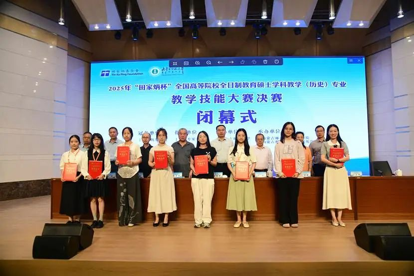 8月25日,2025年全国“田家炳杯”全日制教育硕士专业学位研究生学科教学(历史)专业教学技能大赛在内蒙古师范大学圆满落幕。2024级学科教学(历史)专硕研究生白宗锋斩获二等奖及优秀教学设计奖,江媛媛荣获三等奖及优秀教学设计奖,庞丽娟老师获“优秀指导教师奖”。